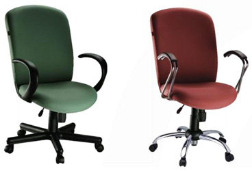 Poltrona Presidente estofada com espuma injetada revestida em tecido ou curvim, assento/encosto anatômicos, braços fixos, mecanismo com regulagem de altura e reclíneo do encosto, base em aço com capa.
