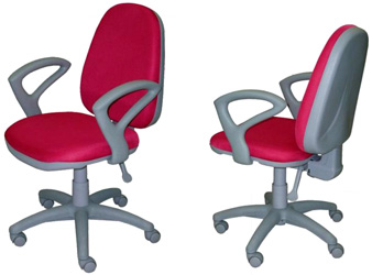 Poltrona Presidente com contra capa no assento/encosto, mecanismo com regulagem de altura do encosto, regulagem no reclíneo do encosto e altura a gás, com braços fixos.