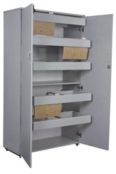 Armário Diretor capacidade de até 05 dispositivos para pastas suspensas, podendo ser substituídos por prateleiras.